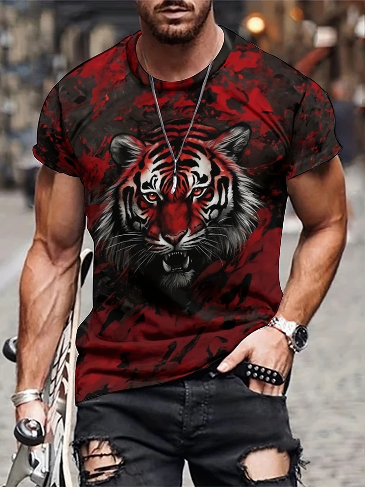 2025 Tiger Print Men's T-shirt Summer Street Fashion Men's Top Outdoor Daily Sports Men's Short Sleeve Urban Casual Men's Top quantity