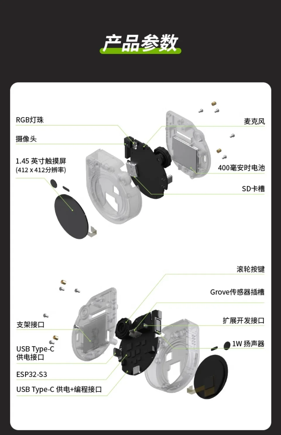 - 4.Open-source platform supporting Bluetooth, Wi-Fi, and GPIO. Dual Type-C ports for power supply. Built-in battery power. Multiple mounting options.