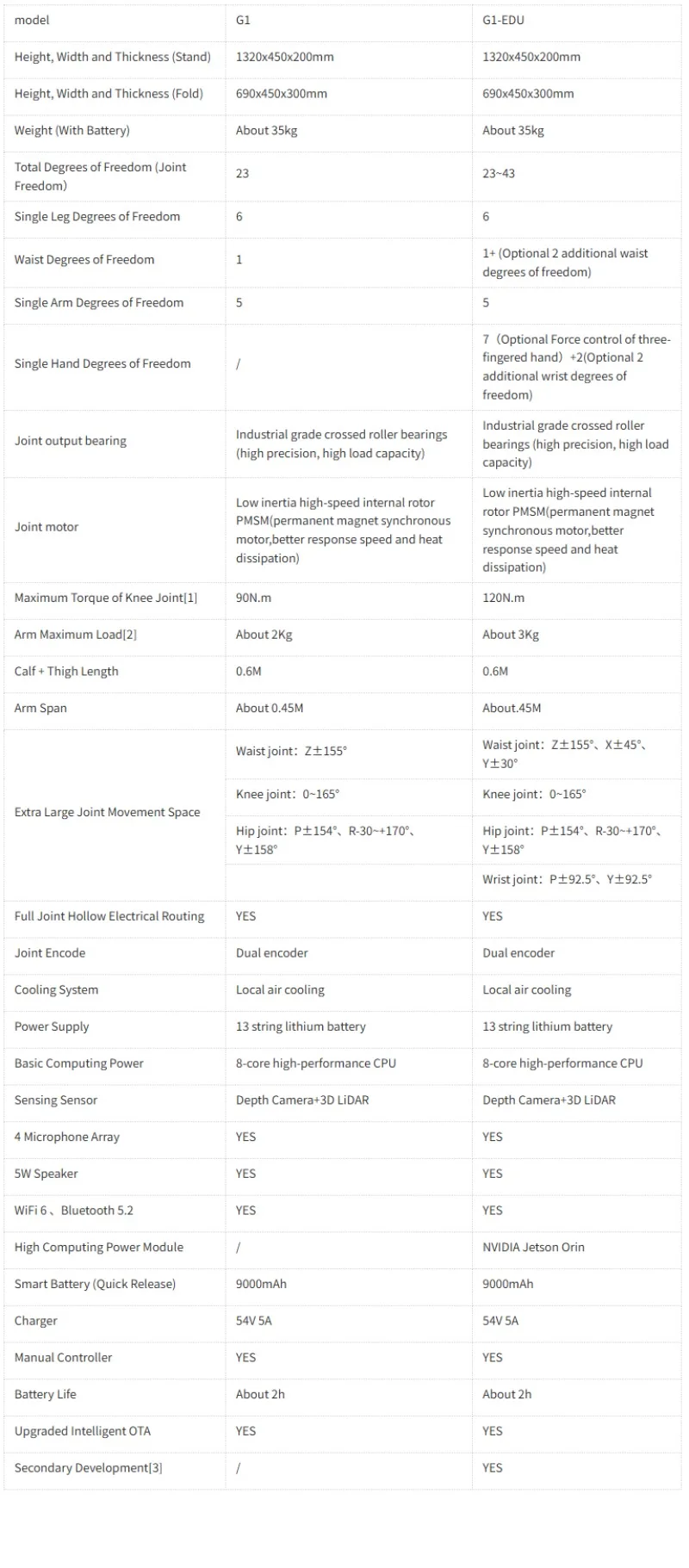 [1] The maximum torque of the joint motors of the whole machine is different. This is the maximum torque of the largest joint motor among them.