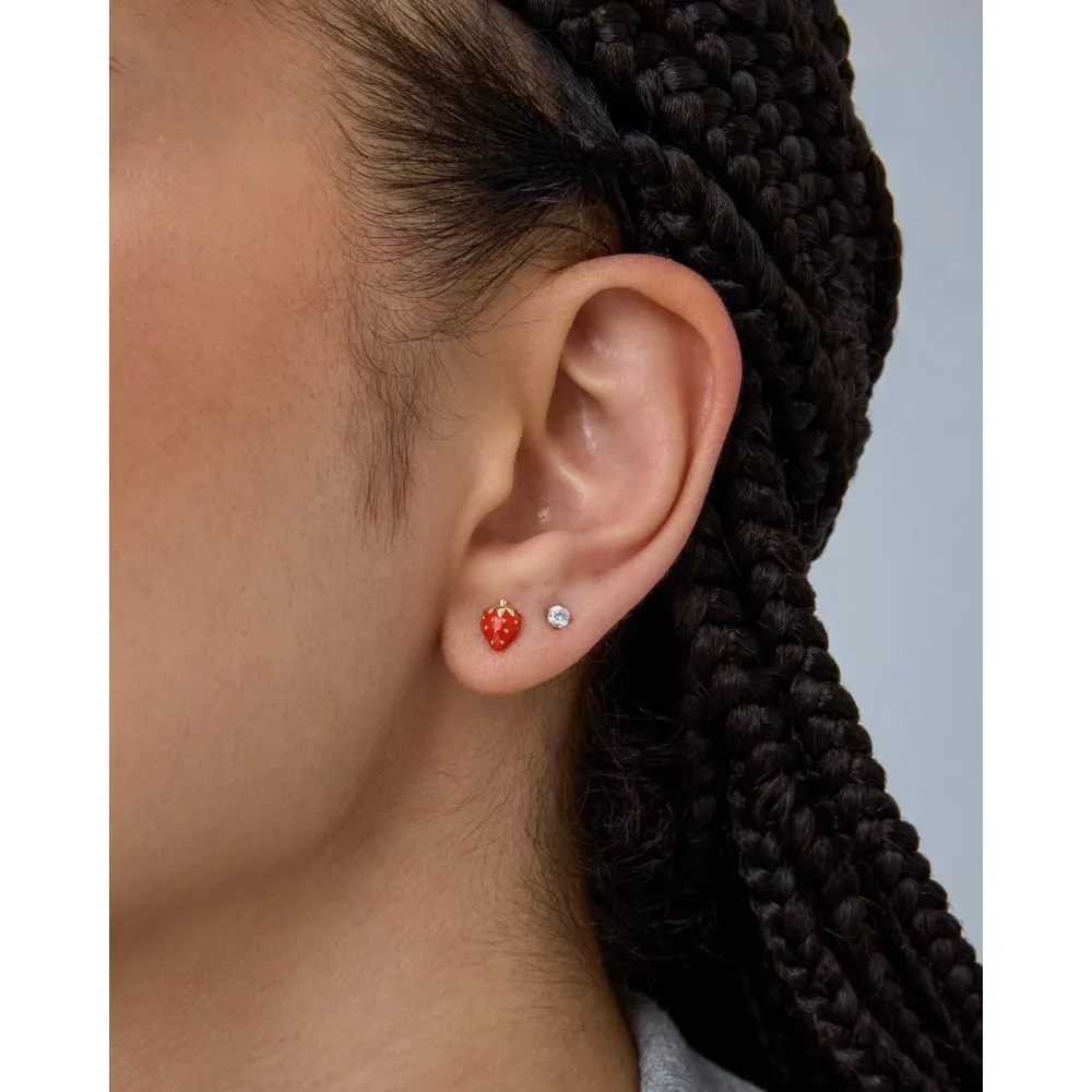 Show off your sweet side in these cute, delicate cherry stud flatback earrings to add some color to your earscape. Featuring rhodium plating, an enamel cherry red finish, 7mm x 6.9mm dimensions, and screwback posts.