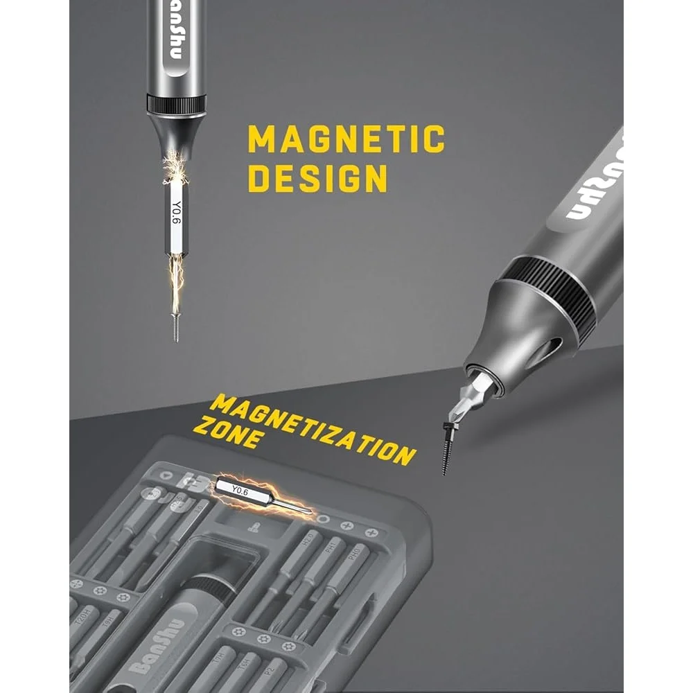 Easy to operate: Take out the screwdriver, find the right bit into the screwdriver head (head is built-in magnet, no losing or fall out bits), a key to start work. high-end practical precision power screwdriver set, can meet the needs of daily maintenance. It is highly welcomed during electronic practitioners and DIY enthusiasts by its professionalism. Even for zero-experience users, it can be easily operated. Its exquisite packaging, practical features make it a decent gift for various holidays.