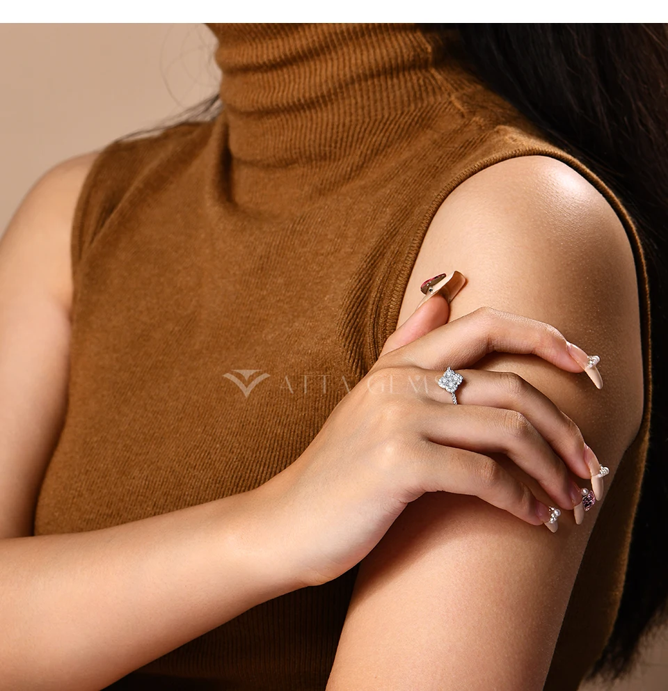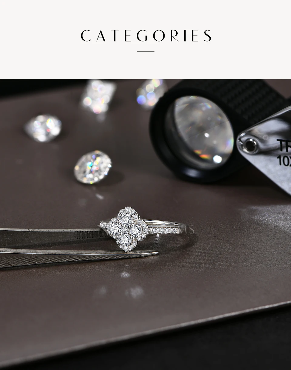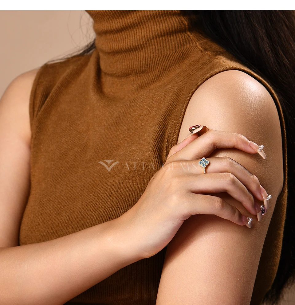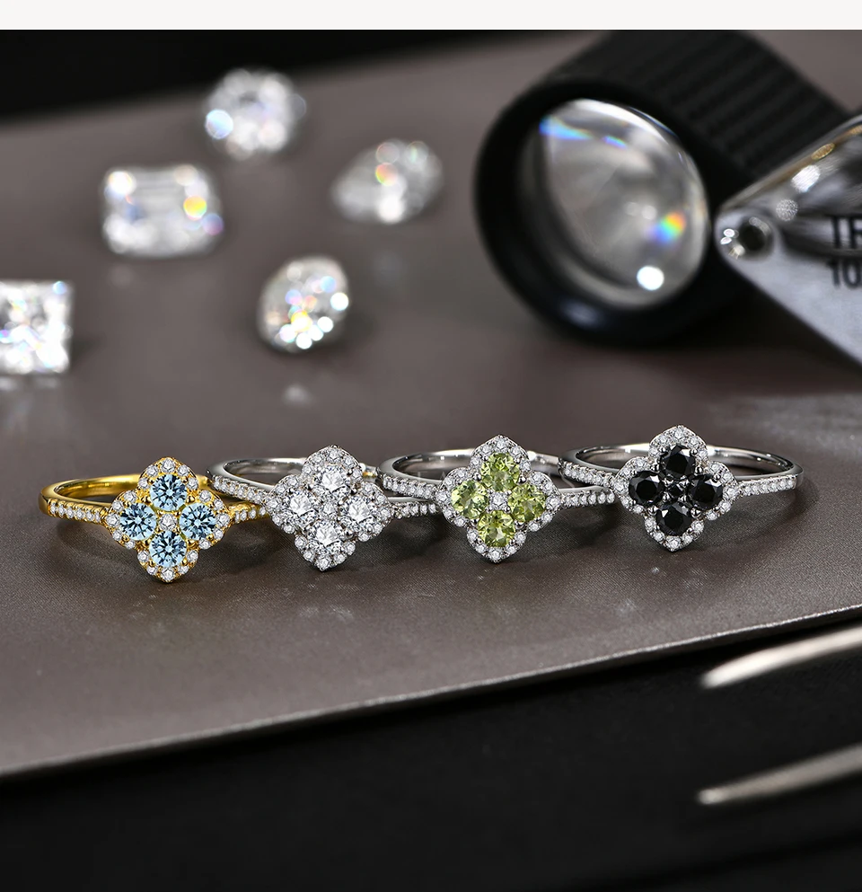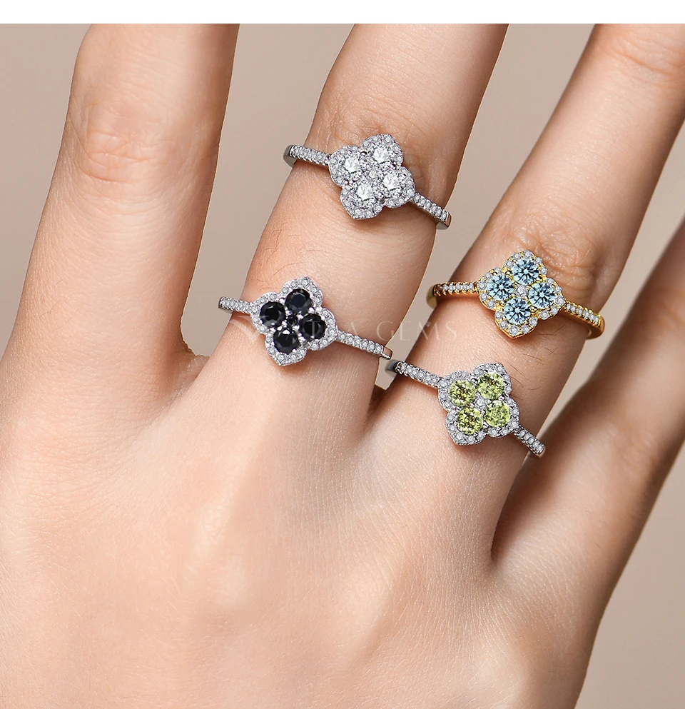 ATTAGEMS Classic Clover Shape Moissanite Rings for Women D VVS1 Color 100% S925 Sterling Silver Wedding Party Fine Jewelry Gift