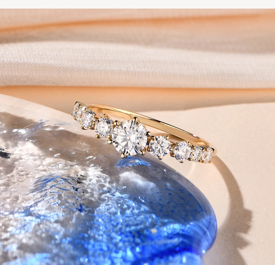 - Main Stone: 5.0mm D Color VVS1 Moissanite Diamond