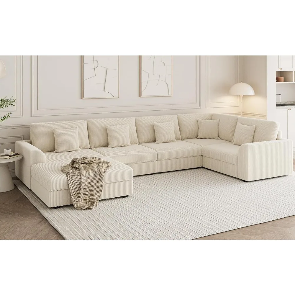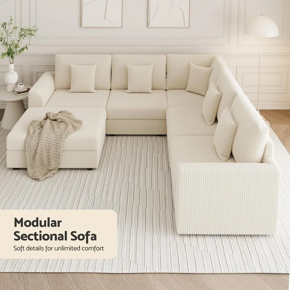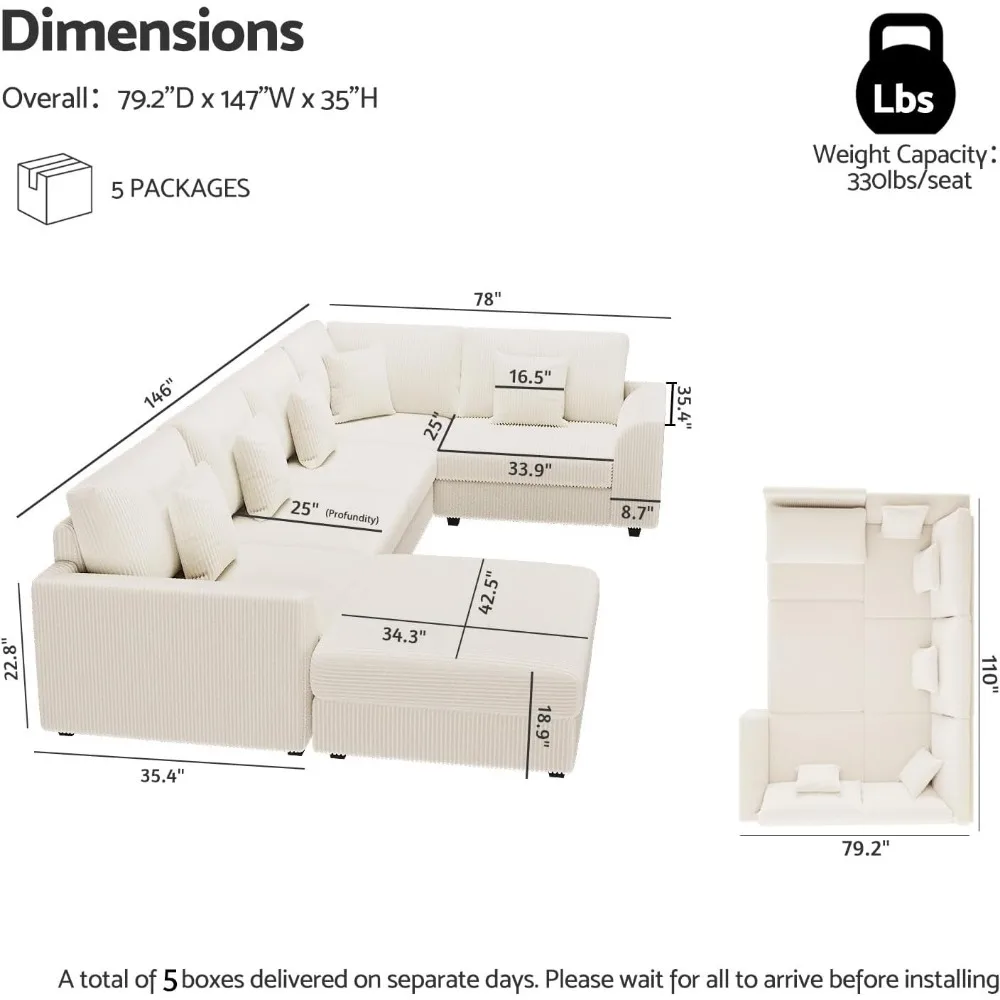 - 【COMFORTABLE SITTING FEEL & FIVE HOLDING PILLOWS】Bigger and thicker seat cushion ensures good support and soft sitting feeling. Our u shape corduroy sectional also add five pillows to make your experience more comfortable and complete.