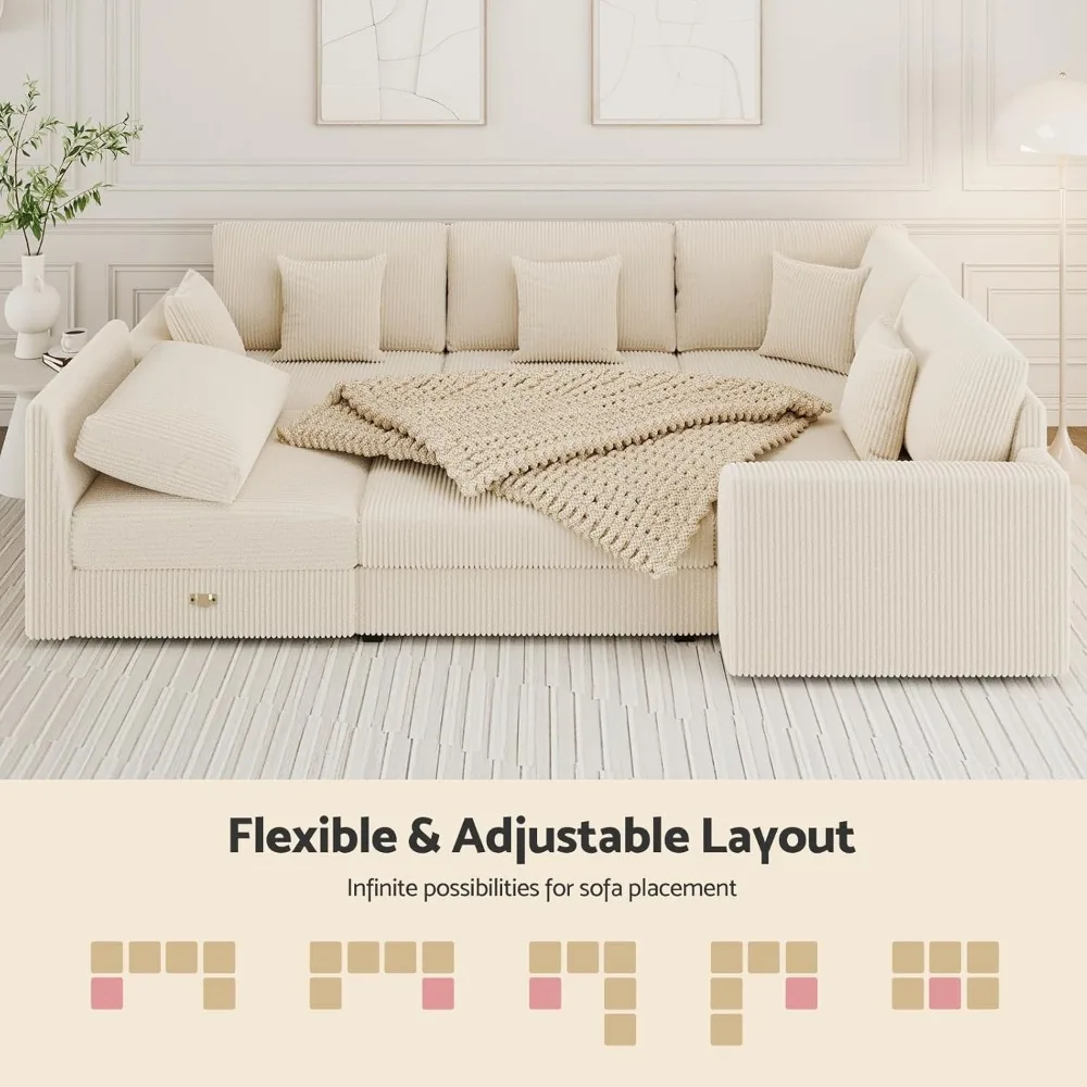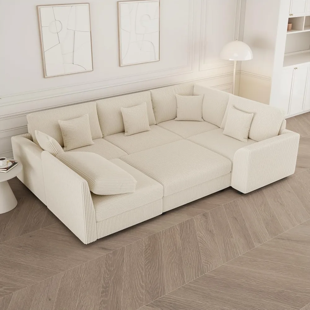- 【FREEDOM OF COMBINATION & SLEEPING SOFA】Our versatile modular combination U-shaped sofa can not only be flexibly combined to meet your space needs, but can also be turned into a sofa bed to provide additional sleeping space.