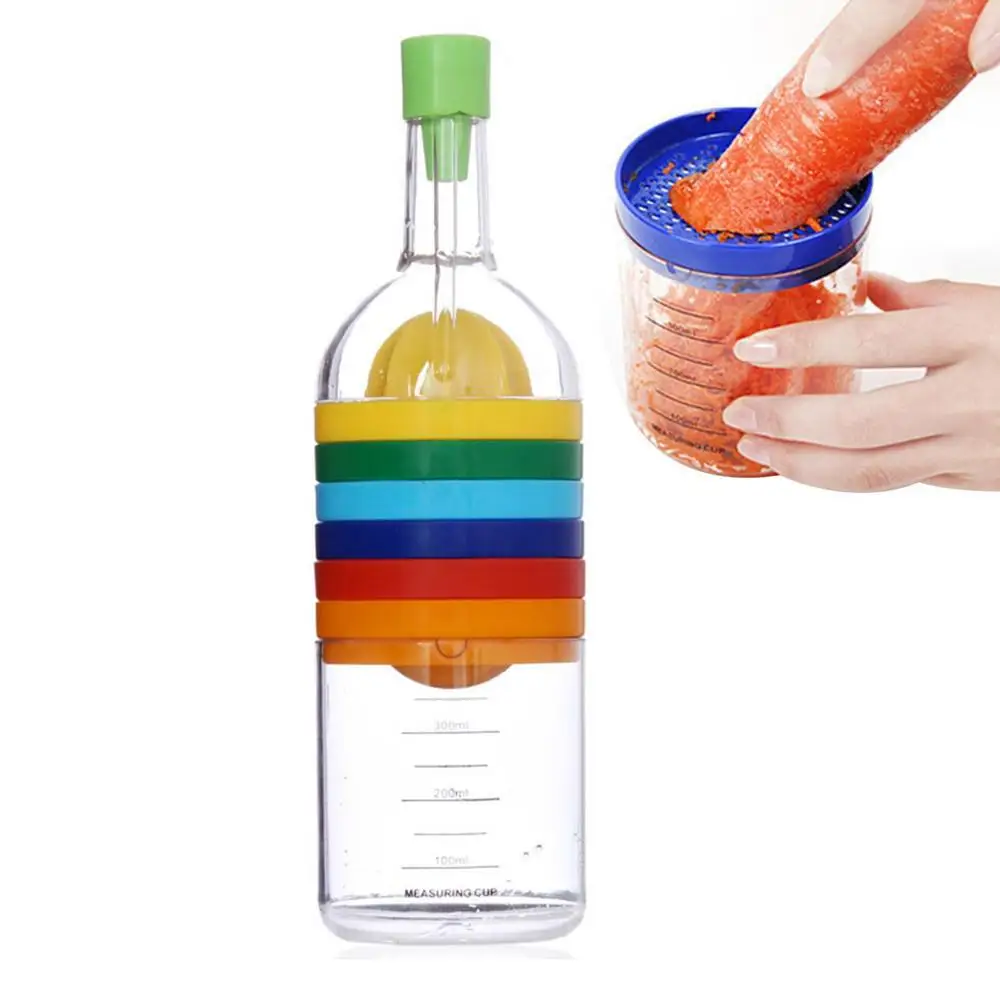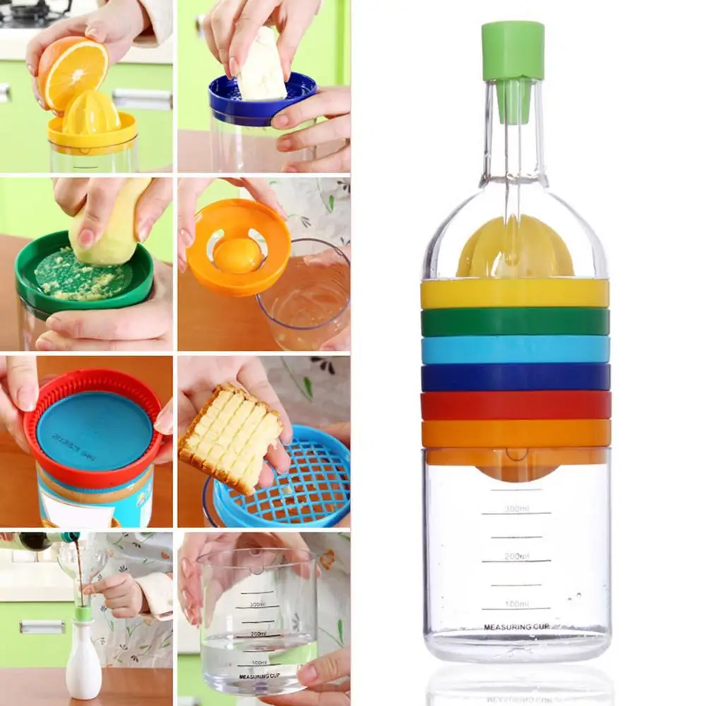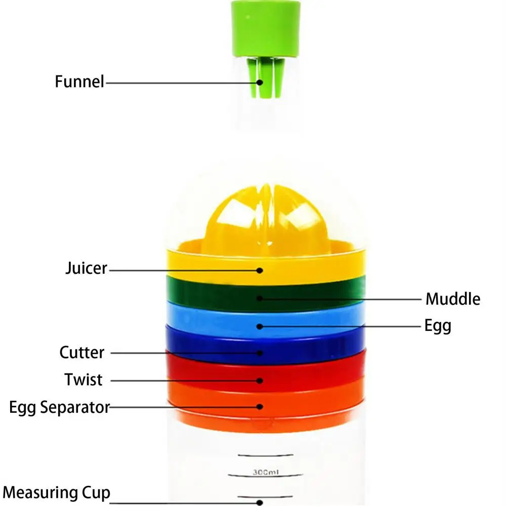 4、This Kitchen Tool Bottle 8 In 1 integrates a variety of accessories such as a funnel, juicer, grater, egg cutter, grater, bottle opener, egg separator and measuring cup to meet any of your needs
