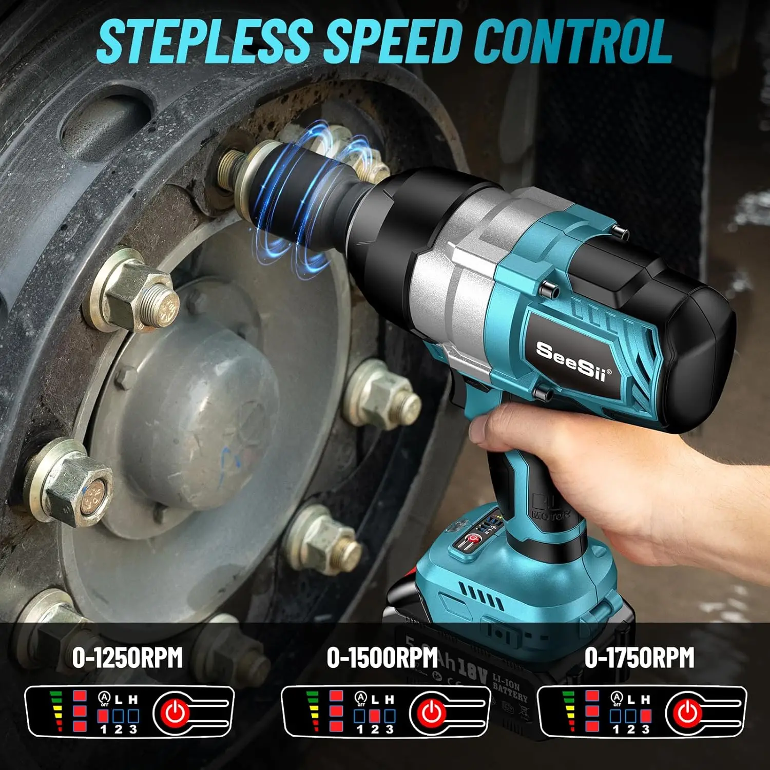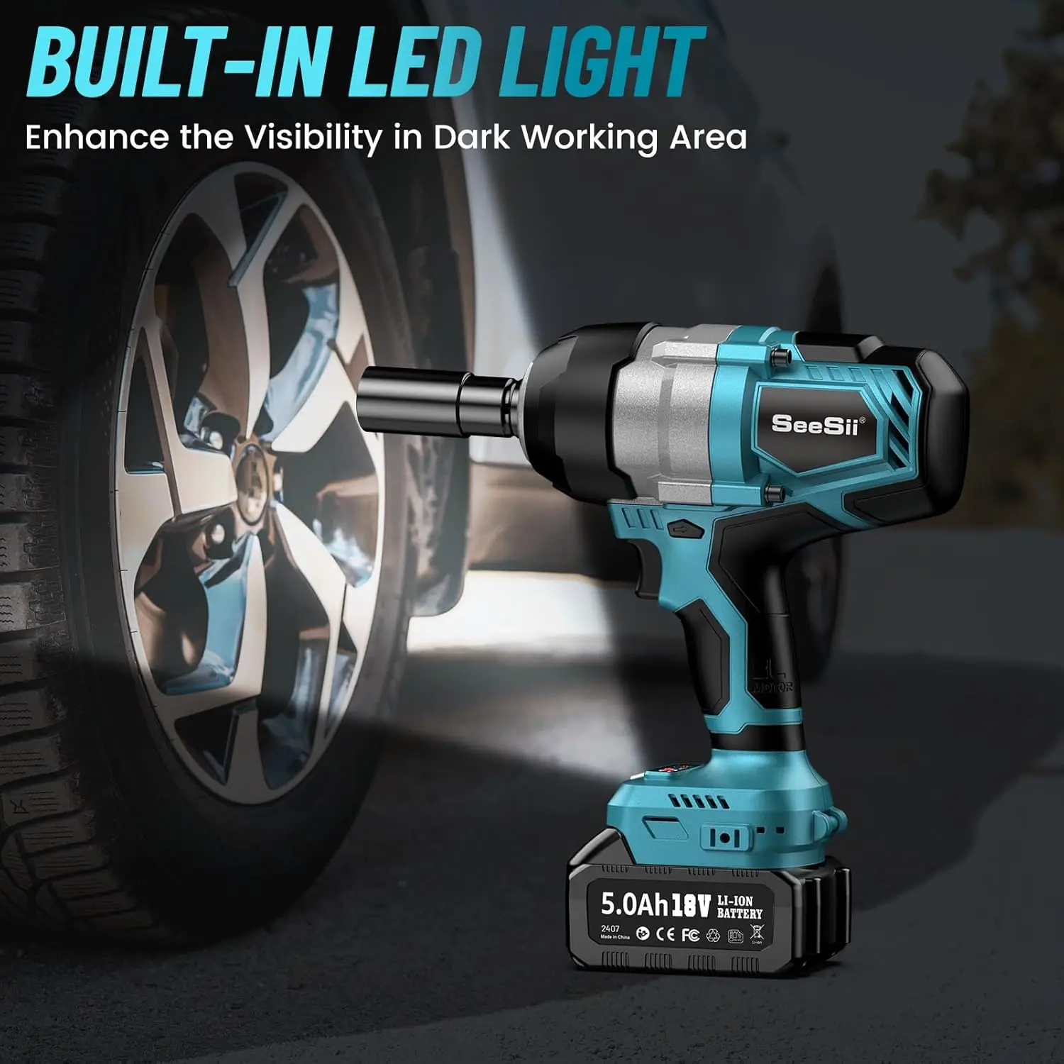 - 2X 5.0AH BATTERY: 25% more capacity over 4.0Ah battery. it can enjoy more than 50% of the battery life and keep the wrench running continuously. Two battery packs eliminate the need for frequent battery recharging, Get Seesii Impact Wrench, get more efficiency out of your work.