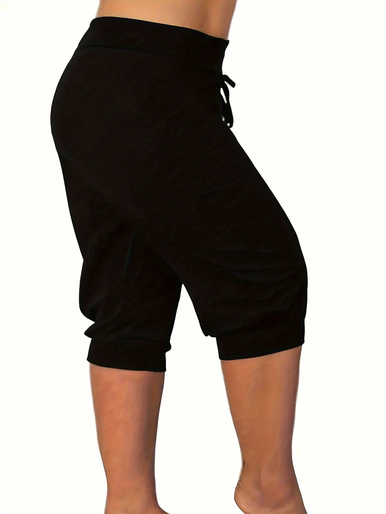 Women’s plus-size casual cropped pants with imitation rope – Comfortable polyester non-see-through Summer chic