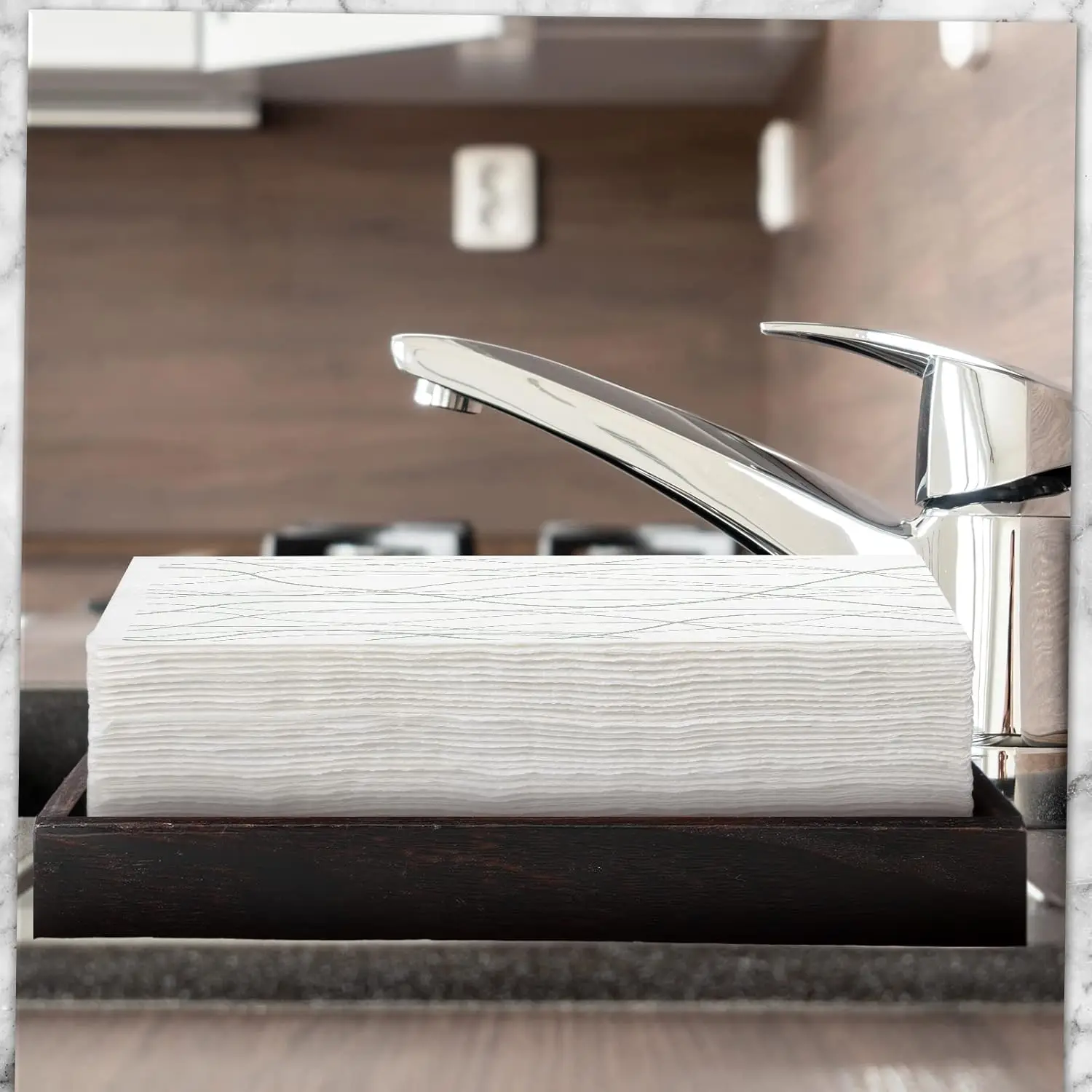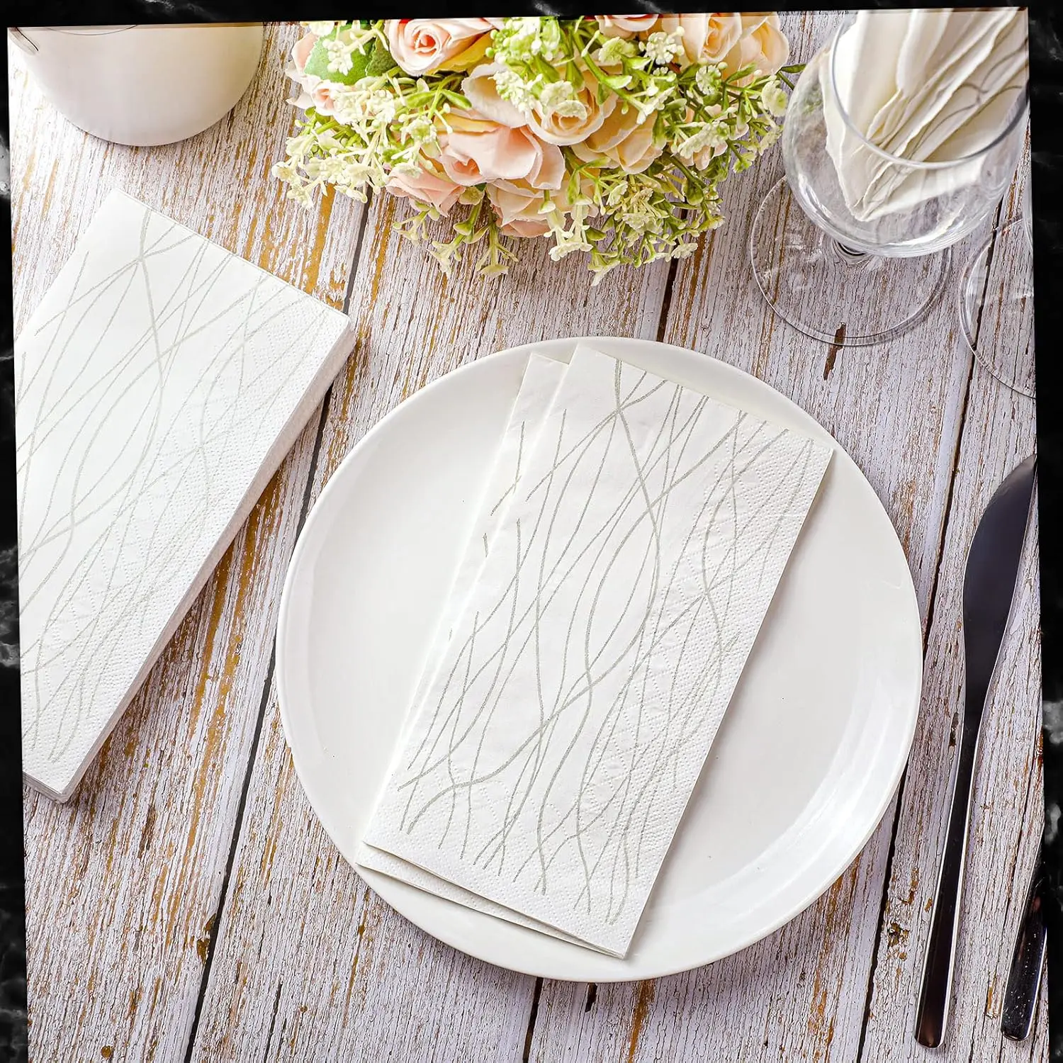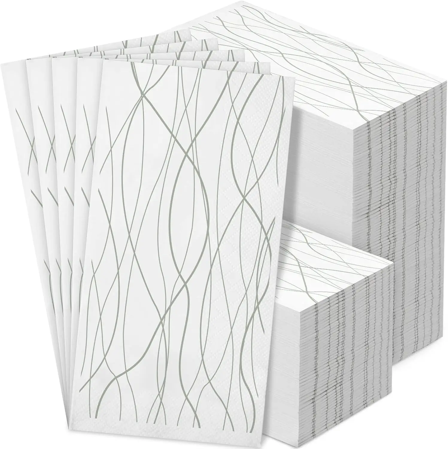 Elegant and erous: these paper guest towels for bathroom adopt a simple design, printed with silver gray wave stripe patterns on the folded side, classic and g, can effectively show your taste and add much charm to your dining table, bathroom, kitchen and party